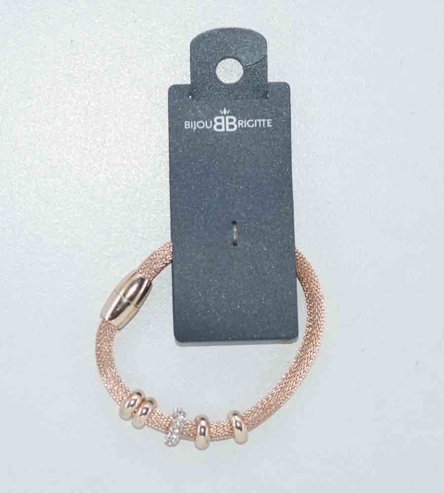 Add some edge to your outfit with this Bijou Brigitte – Snake Chain Bracelet. Contains 5 metallic rings of which one is cover in rhinestones to add that sparkle everyone needs. Wear it to complete your look glamorously.