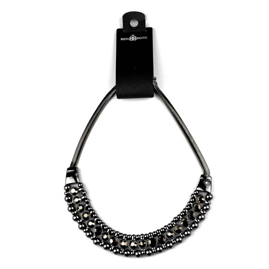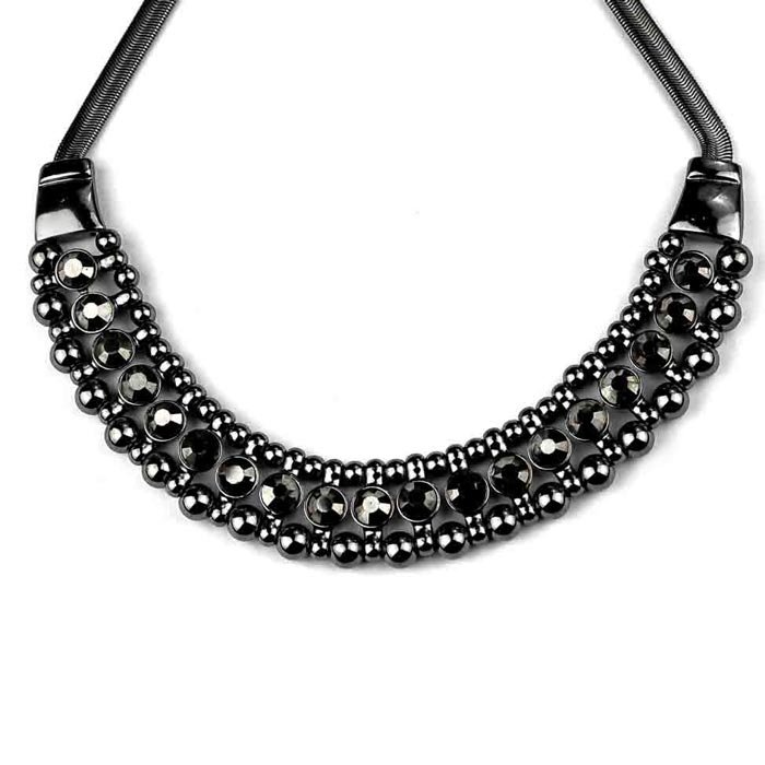 Adding a piece of statement jewellery completely switches up your look. You can take a simple plain t-shirt to the next level with this necklace. Dense metallic finish carrying a line of metallic stones is the main attraction of this piece.