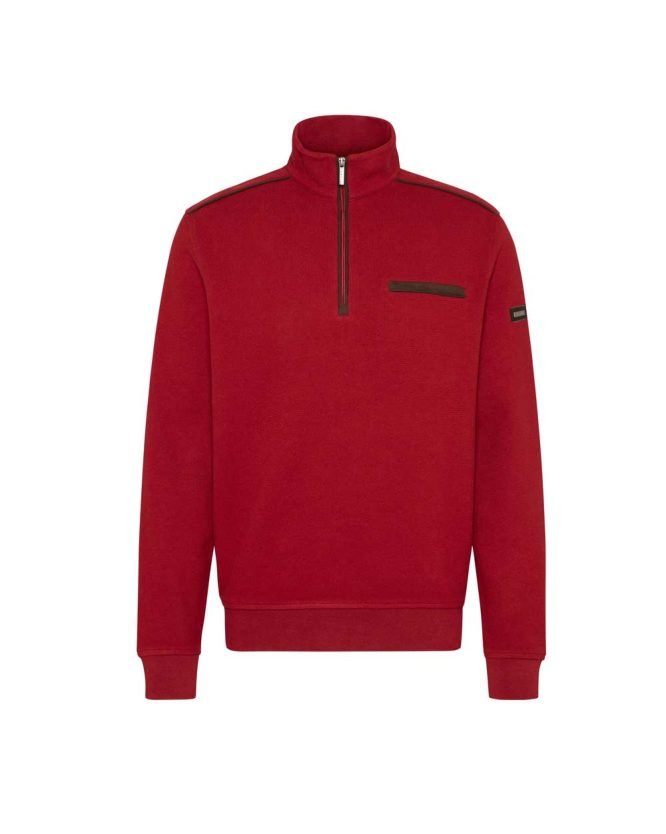 Bugatti -BRUSHED COTTON JERSEY QUARTER ZIP SWEATER