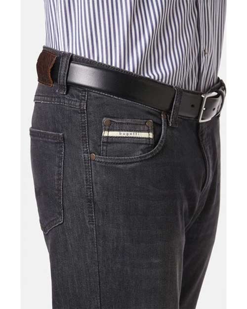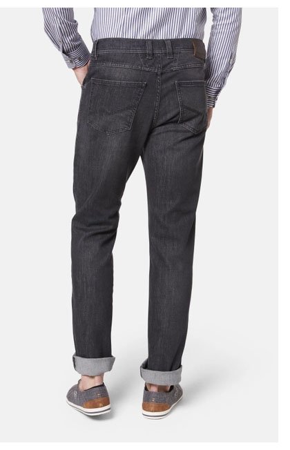 Modern fit, tapered trousers create a great silhouette. Pairs perfectly with a casual jacket, shirt or knitted sweater. Two rounded pockets, a coin pocket with inserted label and patch back pockets with decorative stitching. Six belt loops. Hand wear. Ankle width approx. 38 cm.