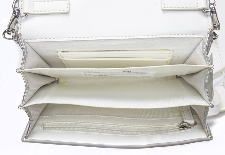 C&A’s Silver clutch bag for party wear. Upto 3 compartments inside.