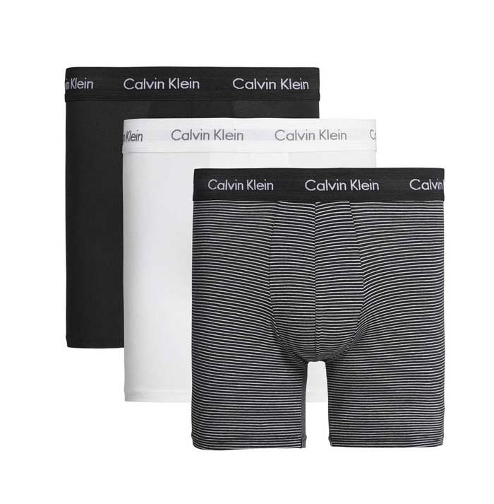 Calvin Klein – Cotton Stretch 3 Pack Boxer Briefs – White / B&W Stripe / Black