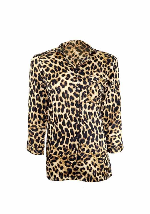 printed shirt, has a lapel collar, long sleeves