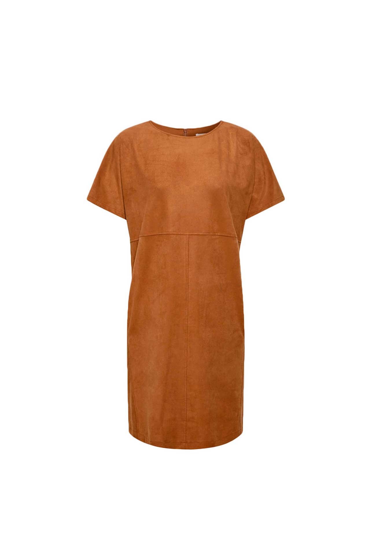 Dress in blue of the mark Esprit. This model has a round neckline, short sleeves and closes with a zipper at the back. The dress has a suede look and falls smoothly along the body. This item by Esprit Esprit Dress has the color: Brown Quality