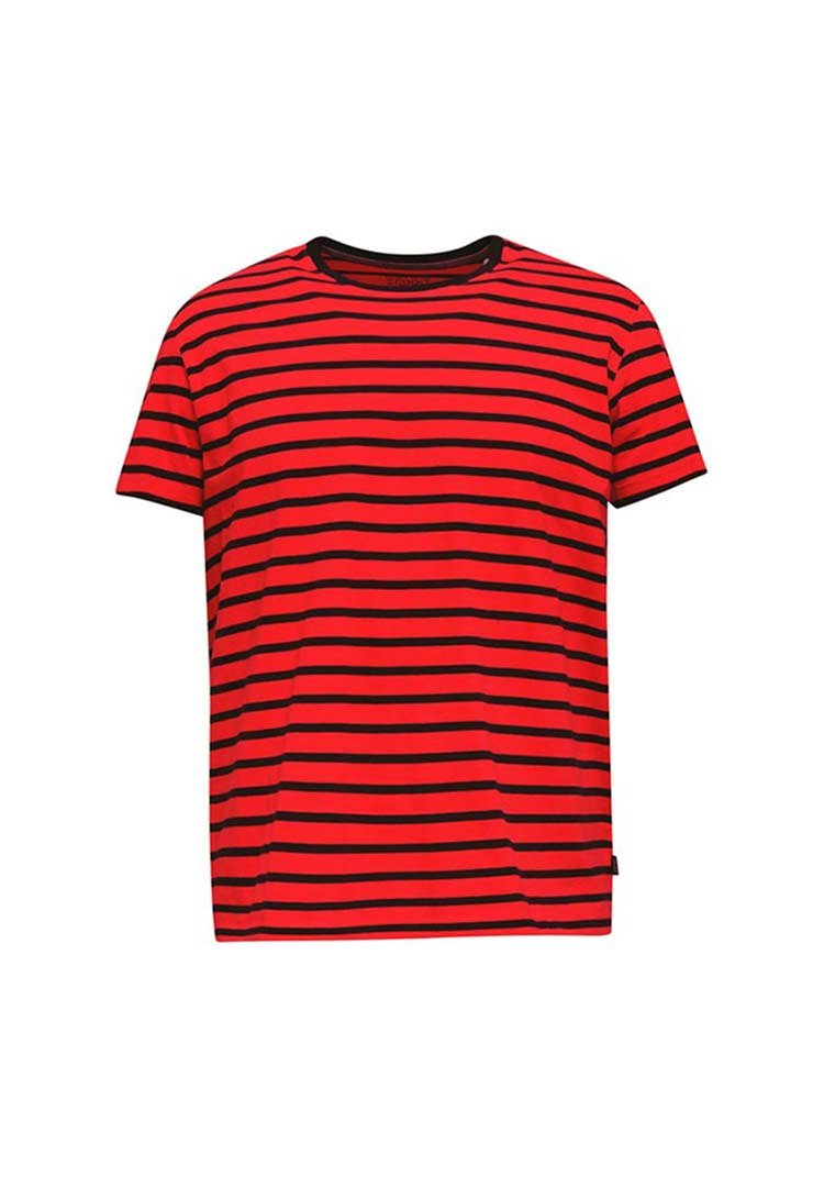 Striped men’s red short-sleeved t-shirt by Esprit, in Regular fit, with round neckline and allover striped pattern design.