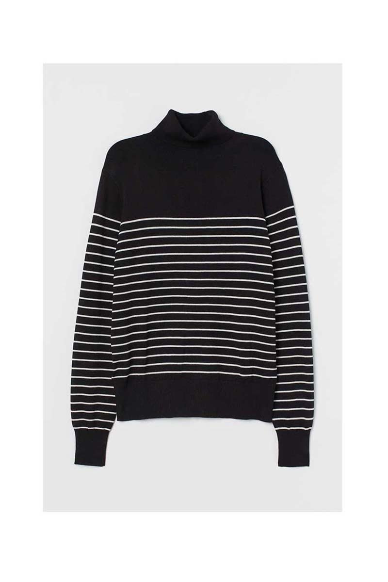 H&M -Black/white striped Fine-knit Turtleneck Sweater