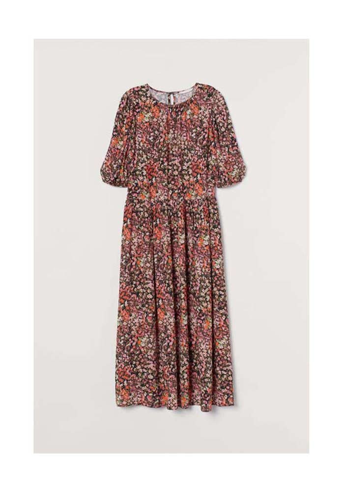 Calf-length dress in an airy viscose weave. Round neckline with decorative gathers, and an opening with a button at the back of the neck. Wide, elbow-length raglan sleeves. Unlined.