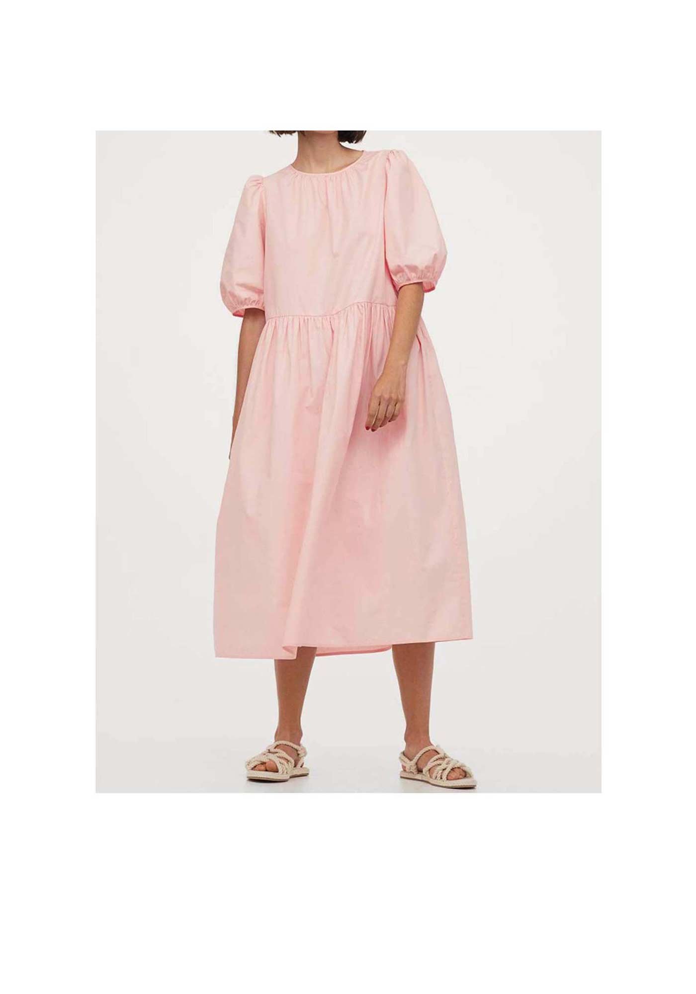 Calf-length dress in an airy viscose weave. Round neckline with decorative gathers, and an opening with a button at the back of the neck. Wide, elbow-length raglan sleeves. Unlined.