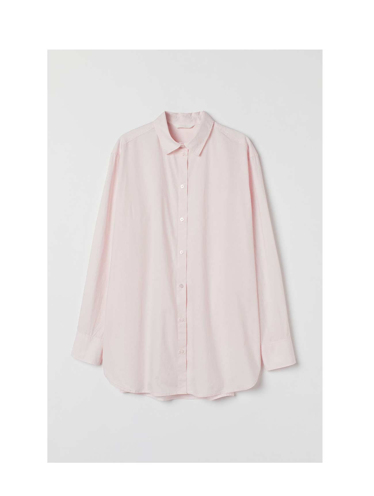 Straight-cut shirt in an airy cotton weave with a collar and buttons down the front. Double-layered yoke with shoulder seams placed slightly towards the front and a seam with a pleat at the back. Gently dropped shoulders, long sleeves with buttoned cuffs, and a gently rounded hem with short slits in the sides.
