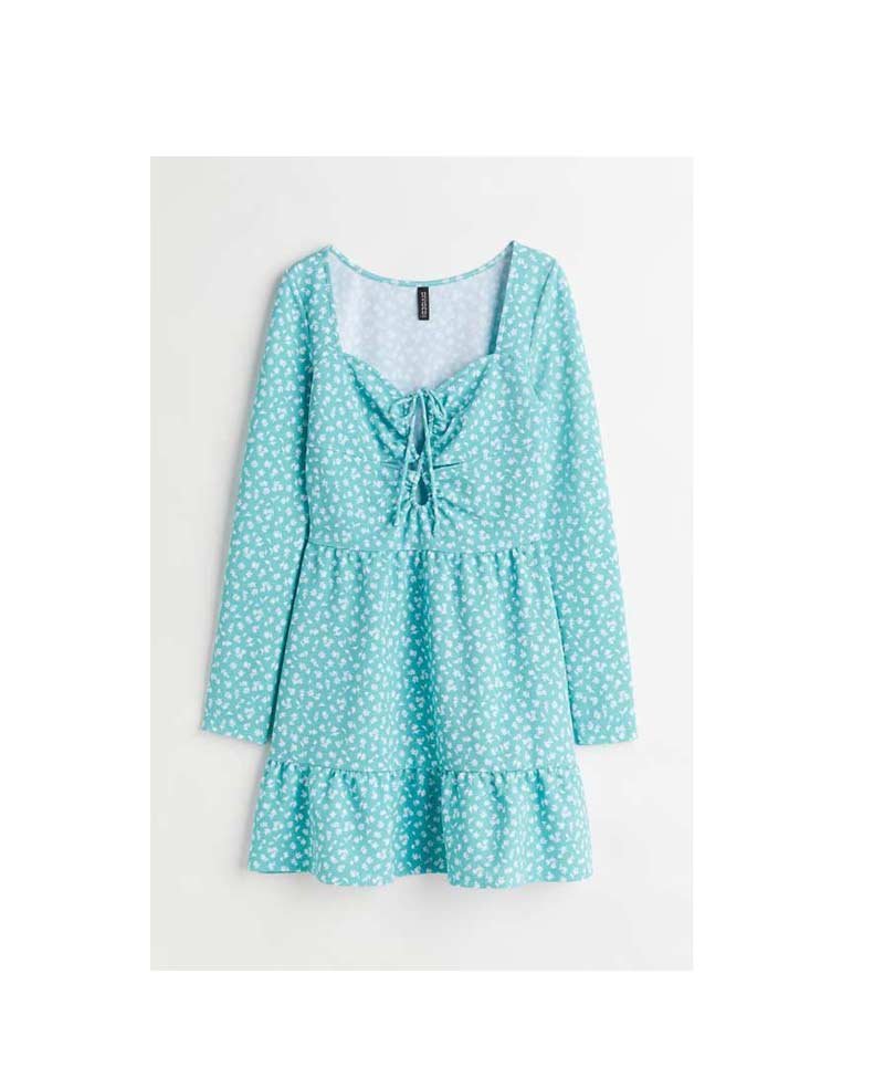 H&M – Crêpe lacing-detail dress Turquoise/Small flowers