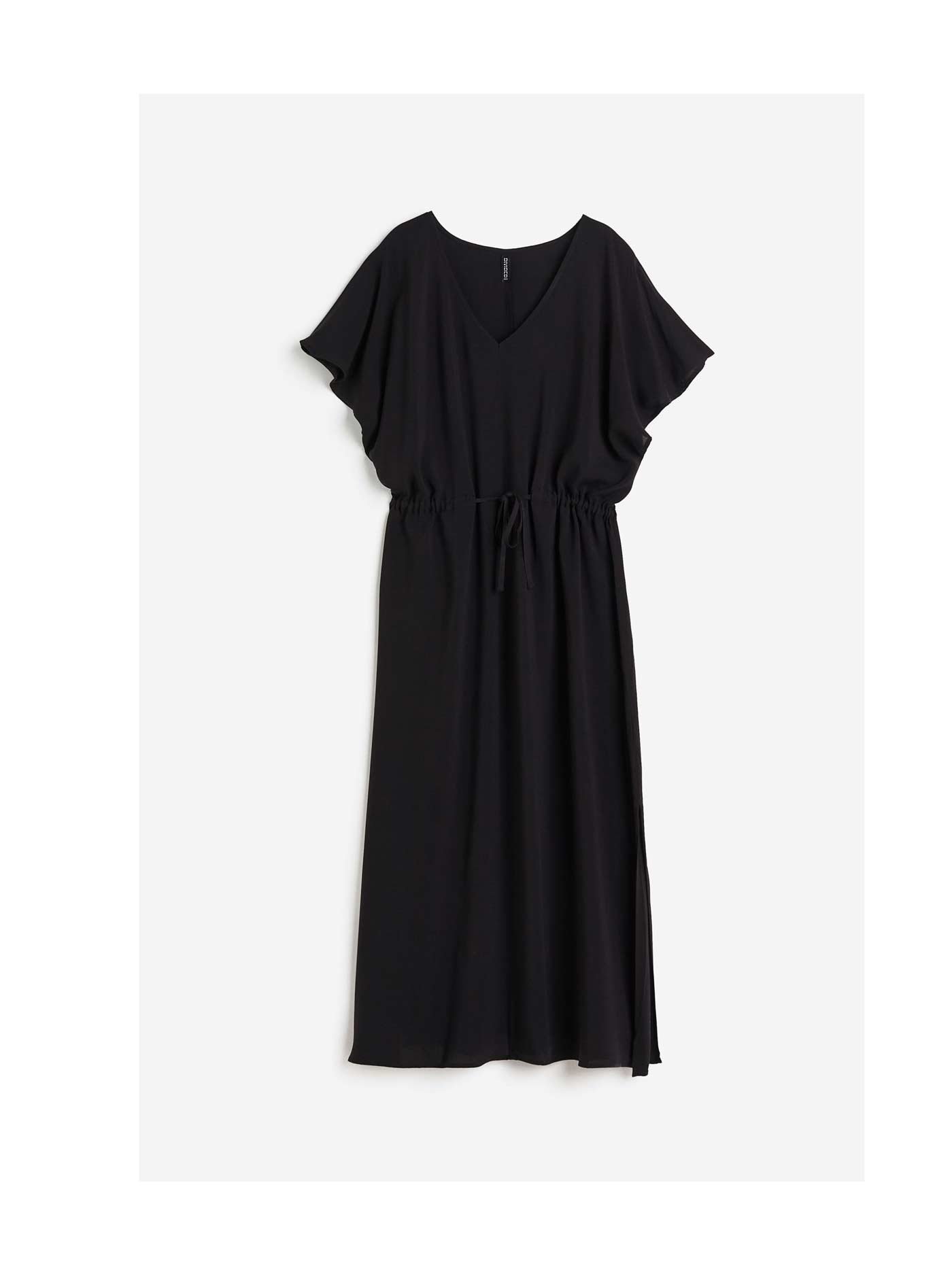 Calf-length dress in airy, woven viscose fabric. V-neck, short butterfly sleeves, and a drawstring at waist. Straight-cut hem. Unlined.