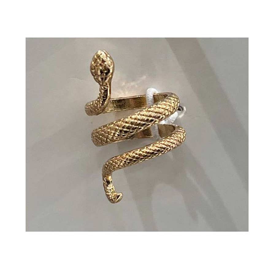 Gold-toned twisted snake pendant ring in an embossed finish.