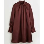 Short dress in woven fabric with a collar, buttons down the front, extra-long sleeves and wide cuffs with a slit. Draping down the button band. Unlined.