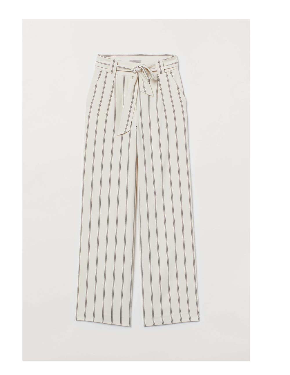 Trousers in a soft weave with a high waist and concealed zip fly with a hook-and-eye fastening. Detachable tie belt, side pockets and wide, straight legs.