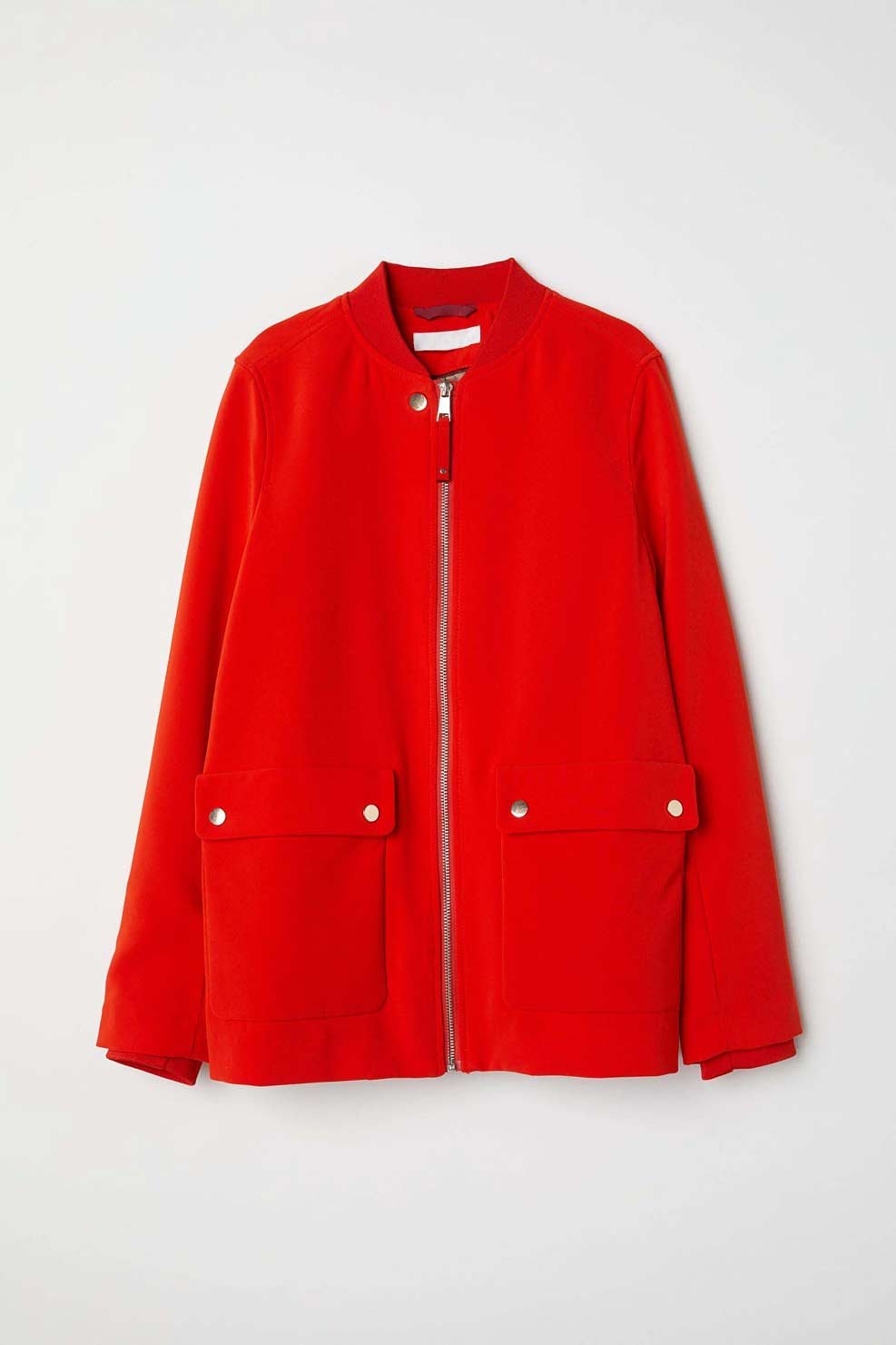 Jacket in woven fabric with a small, ribbed stand-up collar. Zip at front, patch pockets with flap and snap fasteners, and inner ribbing at cuffs. Vent at back. Lined.