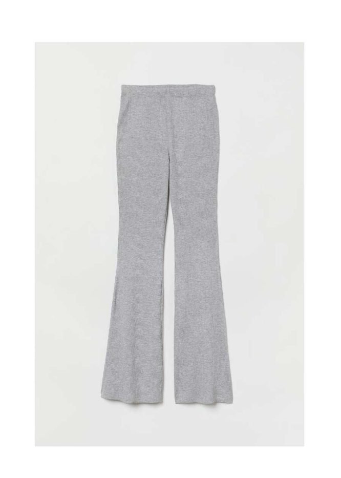Flared leggings in soft, ribbed jersey. Regular waist with covered elastication.