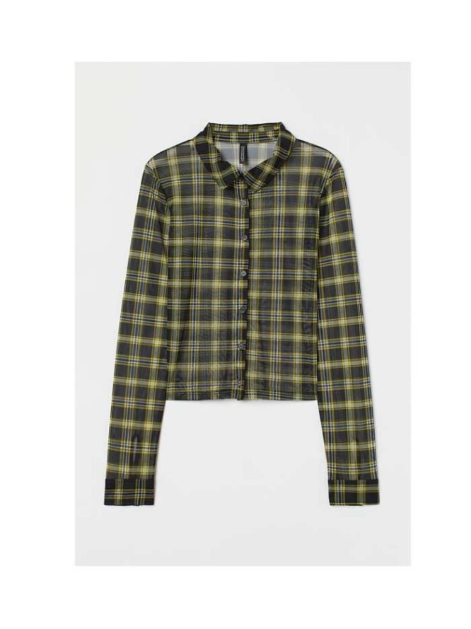 H&M -Mesh Shirt Black/yellow plaid
