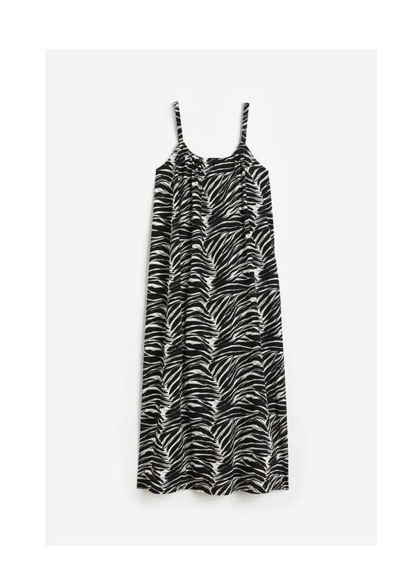 Oversized, calf-length dress in jersey. Narrow shoulder straps, gathered neckline, and lower-cut back.