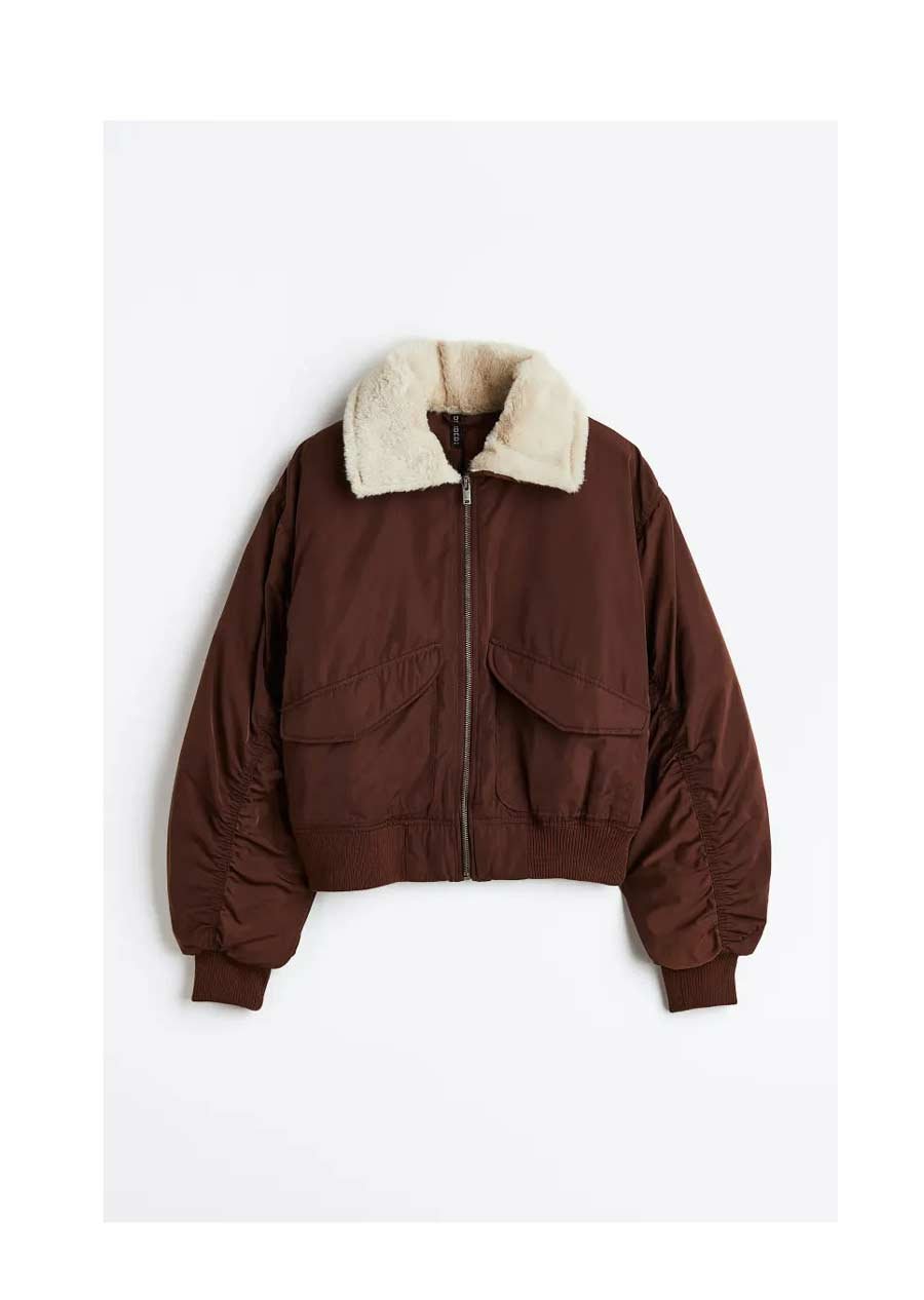 Short, padded bomber jacket in woven fabric. Large teddy collar, a zip down the front, long sleeves and flap front pockets. Ribbing at the cuffs and hem. Lined.