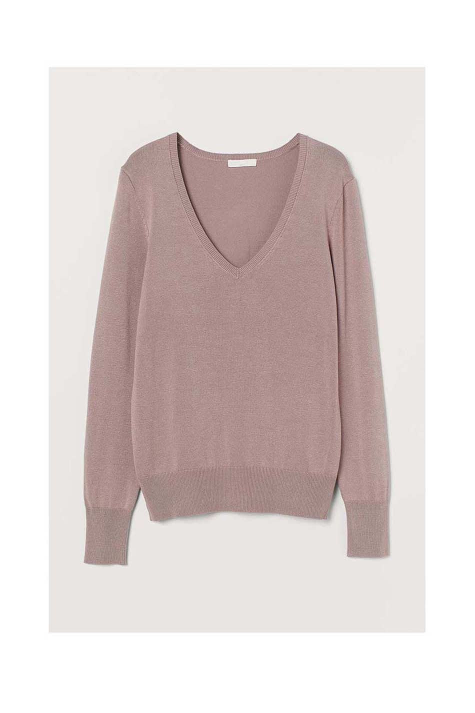 Sweater in a soft, fine-knit viscose blend with a deep V-neck, long sleeves and ribbing around the neckline, cuffs and hem.