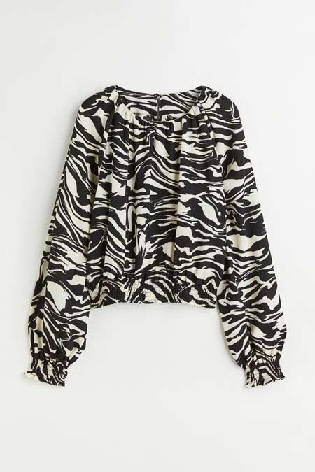 H&M -Patterned balloon-sleeved blouse Black/Zebra-print