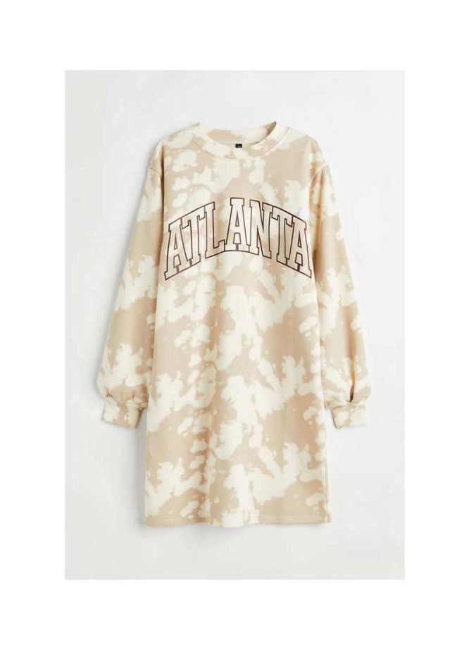 H&M – Patterned sweatshirt dress Beige/tie-dye