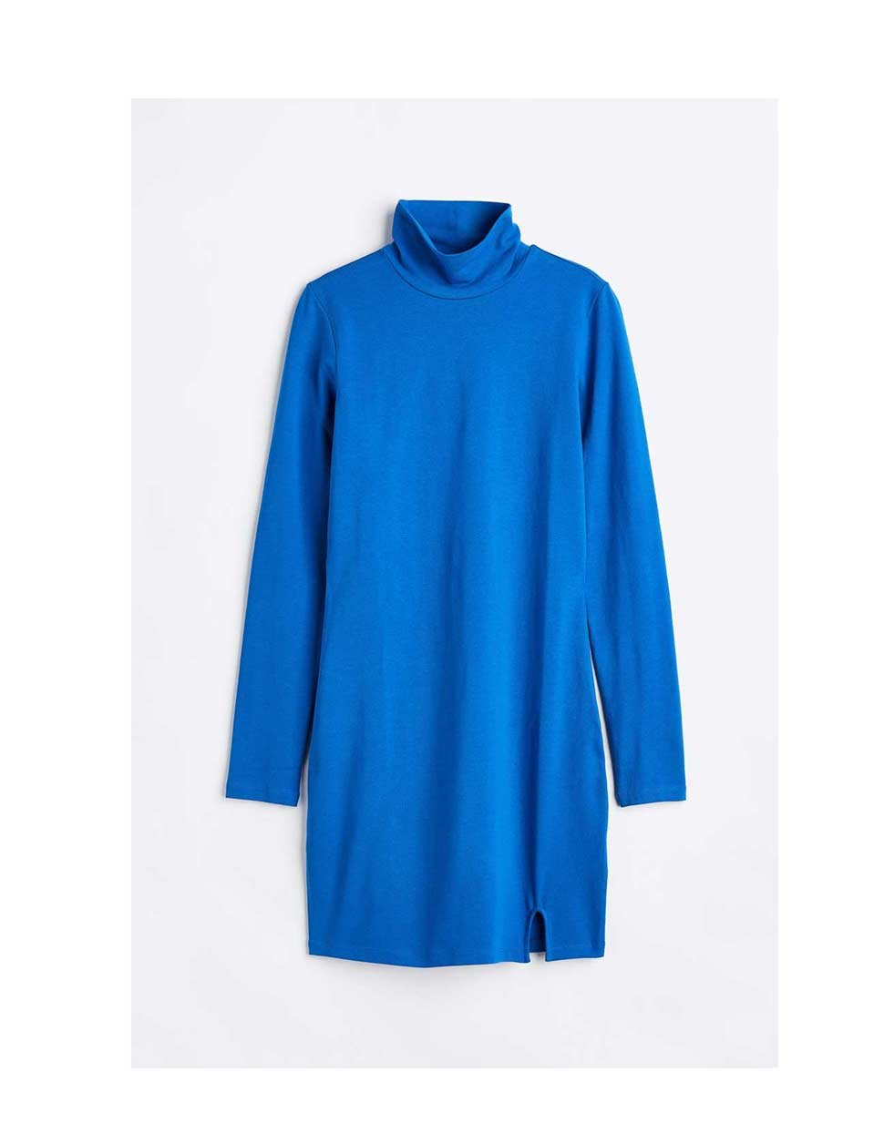 Short bodycon dress in soft cotton jersey with a polo neck, long sleeves and a slit at the front.