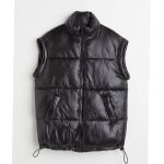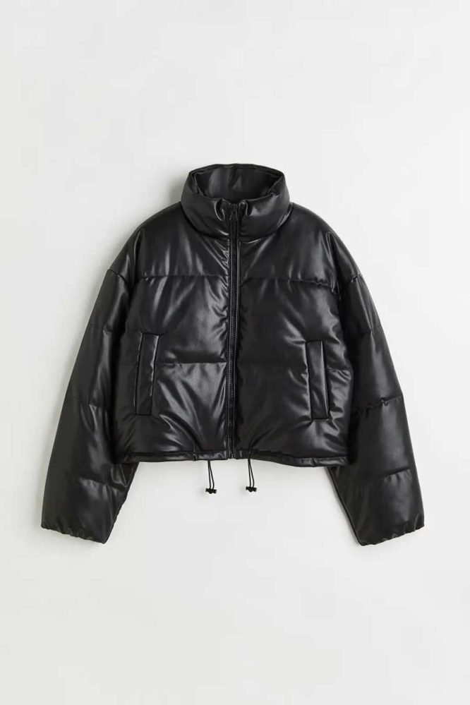 Quilted puffer jacket with a stand-up collar and a zip down the front. Boxy style with dropped shoulders and long sleeves with narrow elastication at the cuffs. Welt front pockets and an elasticated drawstring with a cord stopper at the hem. Lined.