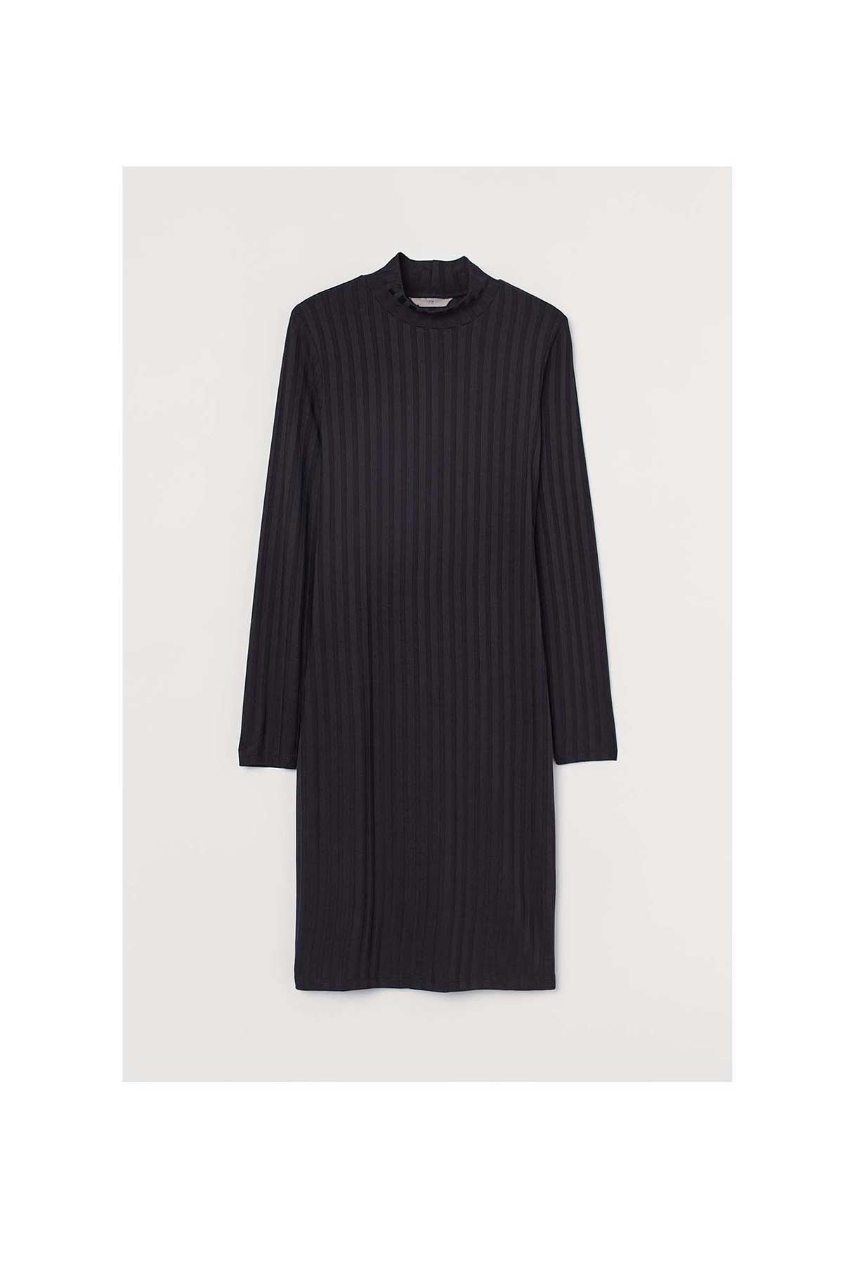 Fitted, knee-length dress in ribbed jersey made from a viscose blend with a slight sheen. Polo neck and long sleeves. Unlined.
