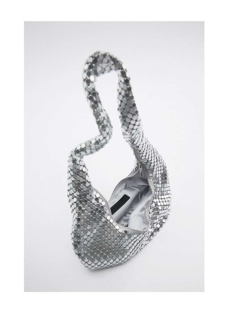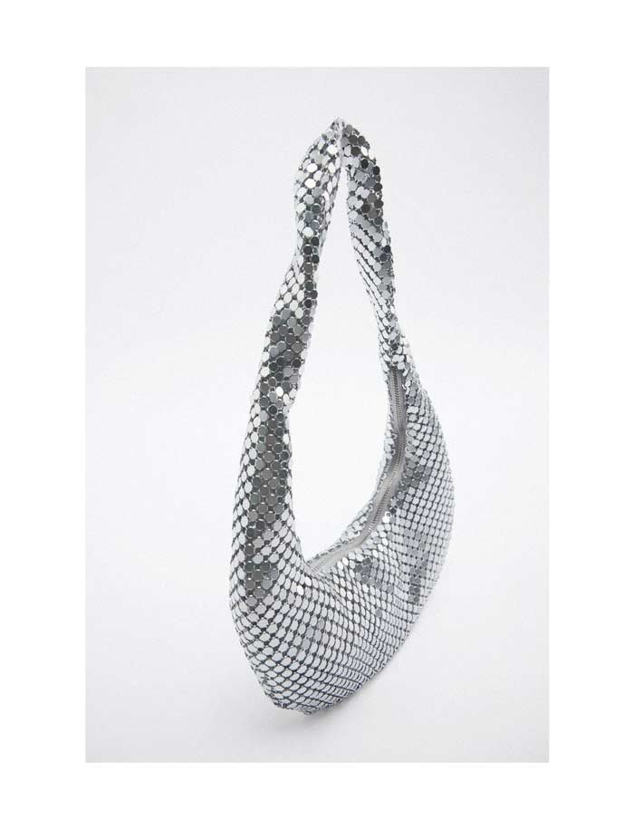 Bag in shiny mesh fabric. Lining, zipper.