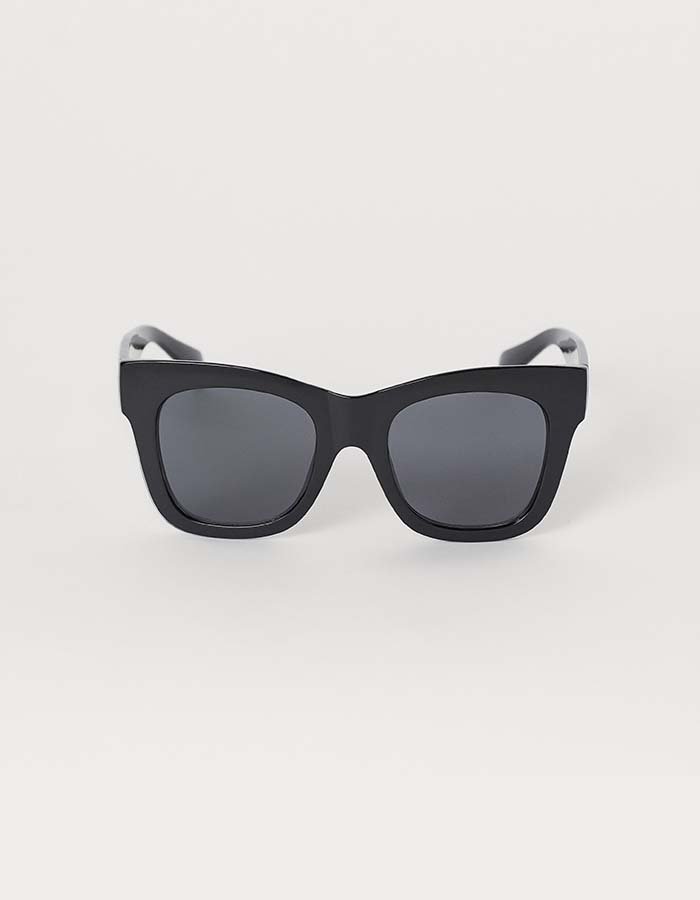 Sunglasses with plastic frames and UV-protective, tinted lenses.