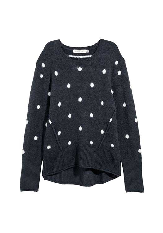 Soft knit sweater with visible seams on the front. Dropped shoulders. Ribbed hem at sleeves and hem.