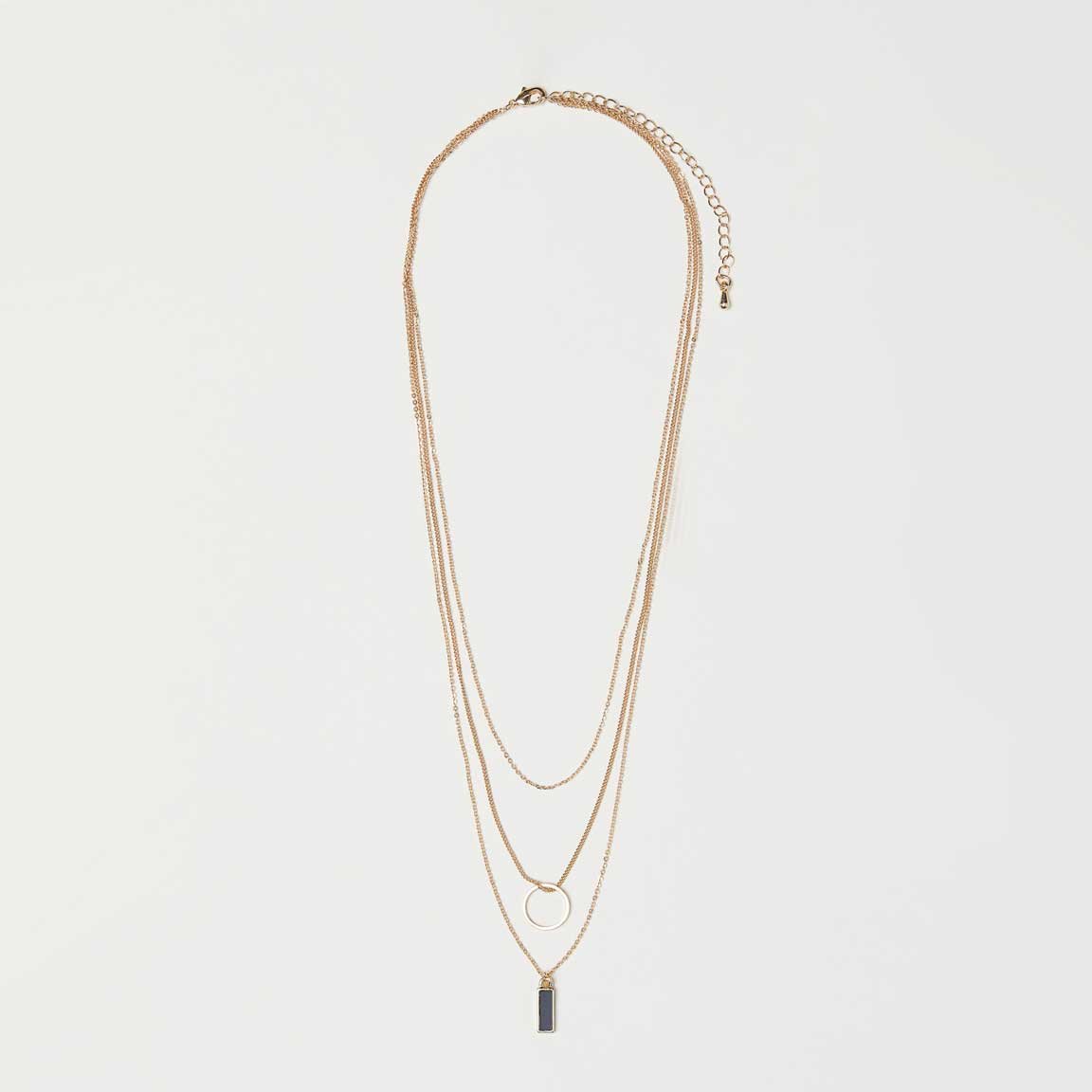Necklace of thin metal chains, two of which have a pendant. Adjustable length 42-50 cm.