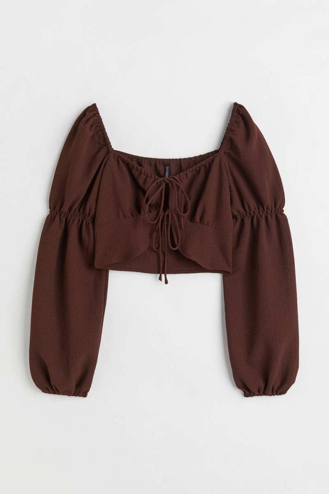 H&M -Tie-front long-sleeved blouse Dark brown