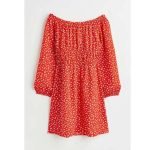 Short, straight-cut dress in woven fabric with a boat neck and an opening at the back with a covered button at the back of the neck. Long, wide raglan sleeves. Unlined.