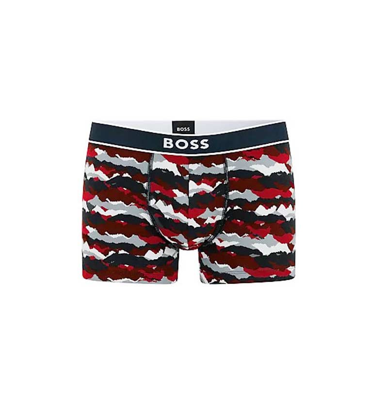 Designer Features: Hugo Boss contrast logo centered on front waistband; graphic print on body