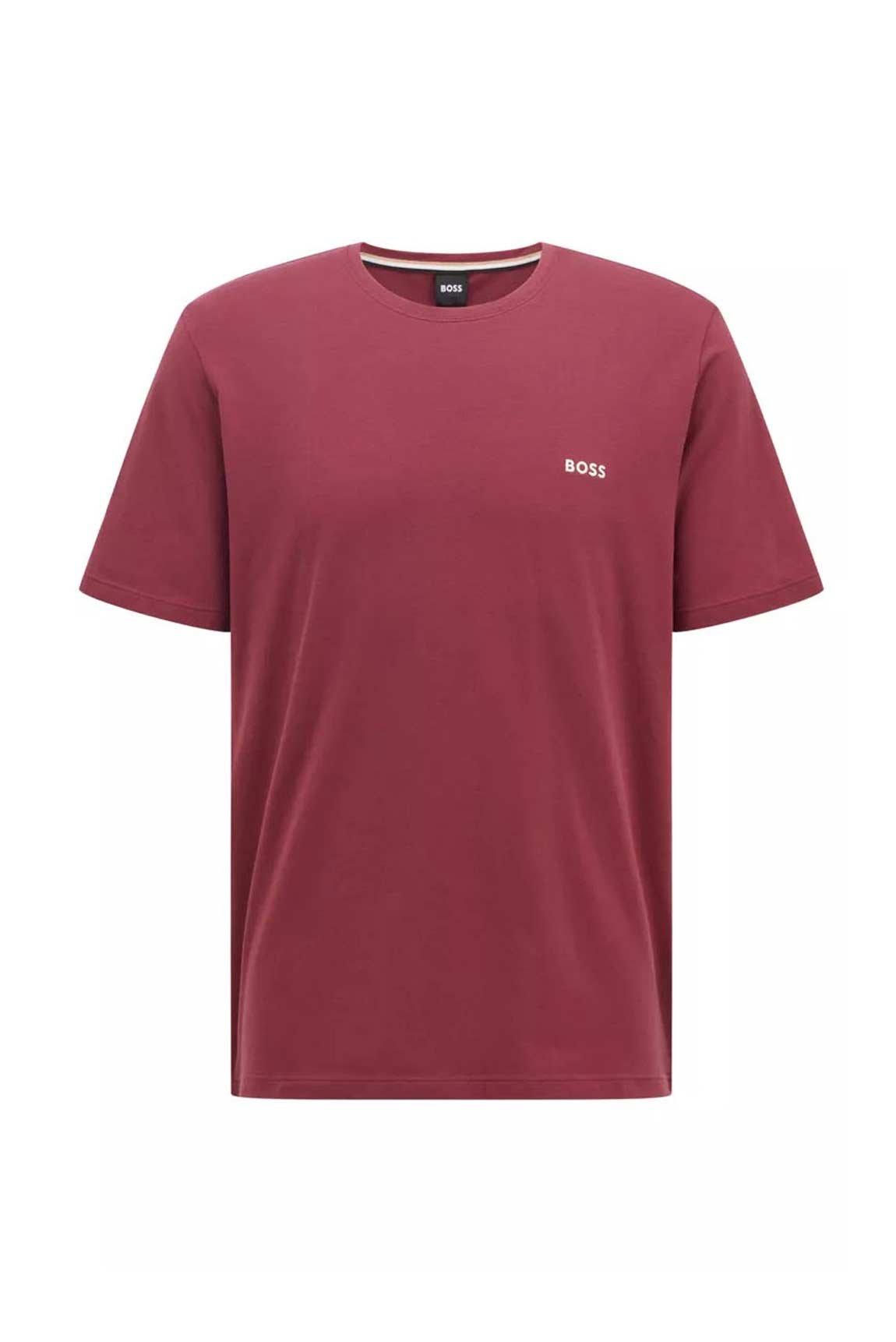 An easy-to-combine loungewear T-shirt by BOSS Menswear. Cut to a regular fit, this short-sleeved T-shirt is designed in stretch-cotton jersey for natural comfort and breathability. The left chest carries an embroidered logo, while a signature stripe appears inside the collar.