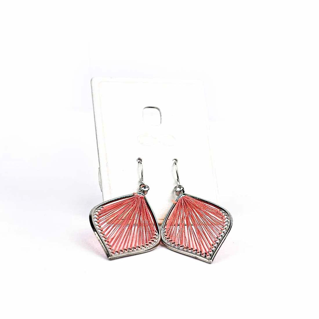 Add a subtle pop of freshness to your look with this pair of earrings. The silver-tone leaf shape earrings are accent with red thread.