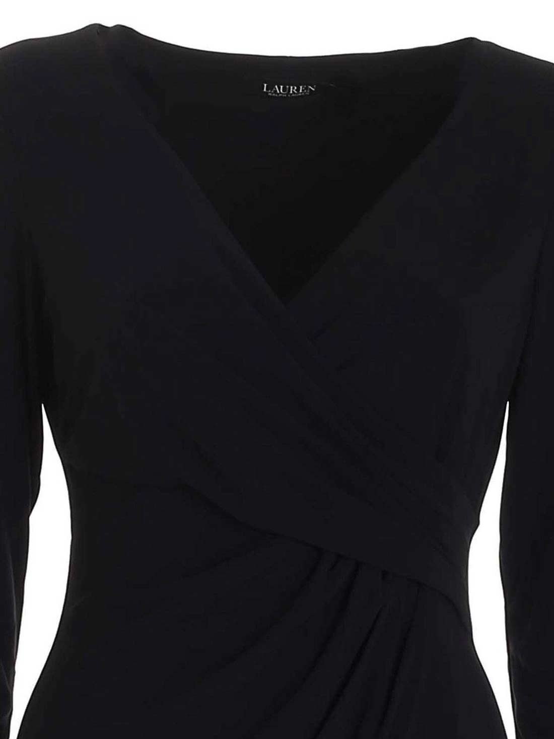 V-neck dress in black.Knee-length dress Color: black Long sleeves Lined.
