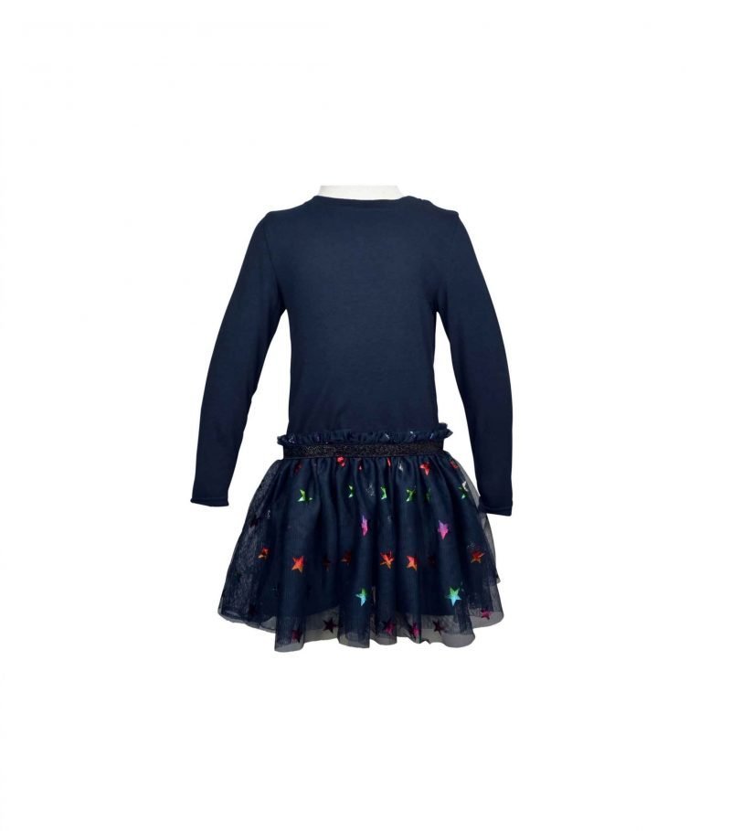 NAME IT – Mini Girl Long Sleeved Navy Dress with Tulle Star Skirt
