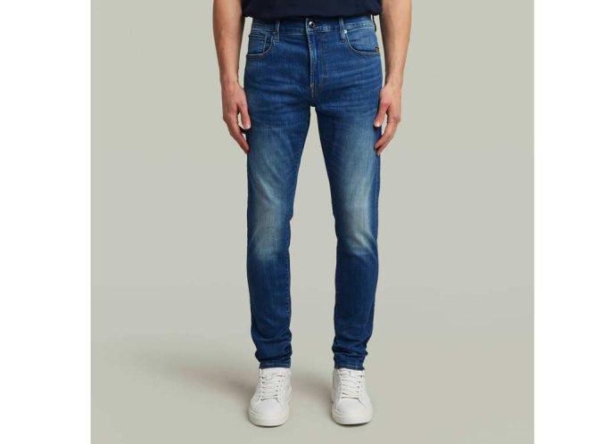 Tailored in a mid-waist skinny fit, these Revend jeans feature 3D-effect back pockets, enhanced by the leather trim.
