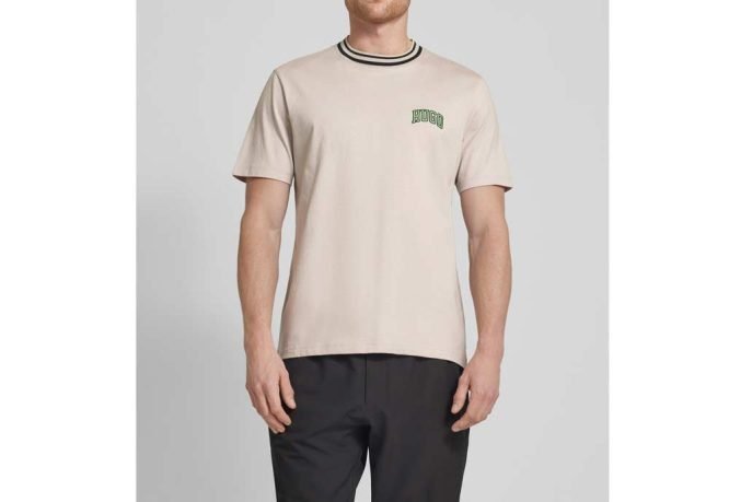 Original HUGO BOSS -T-Shirt mit Label-Stitching in stein