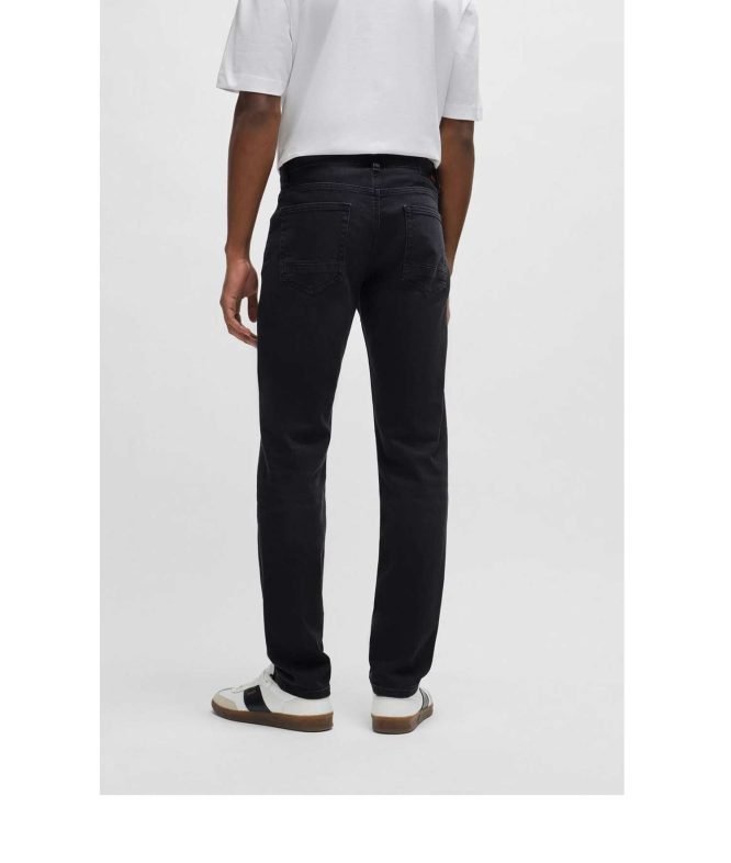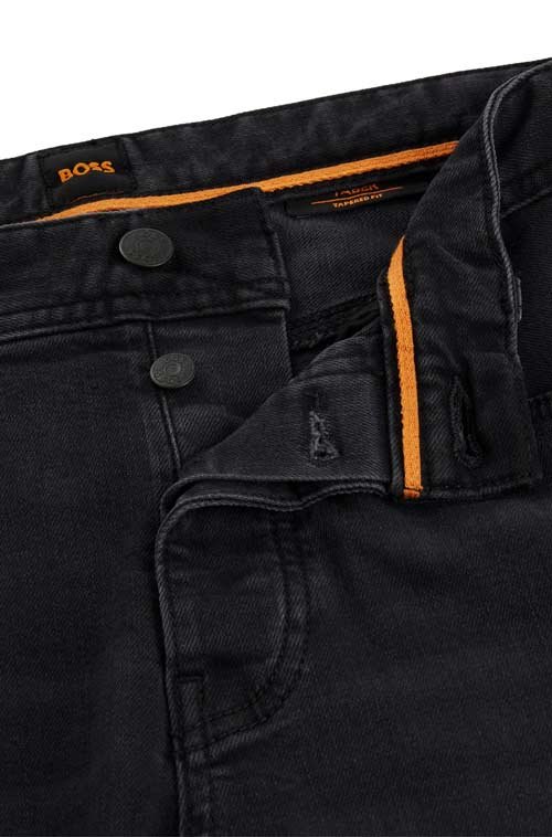 Versatile jeans by BOSS Menswear, cut to a tapered fit in deep-black denim blended with generous stretch for shape retention. For our BETTER BOSS products, we always use at least 60% better raw materials. This product is made with organic cotton. Our organic standards do not allow the use of synthetic fertiliser, pesticides or genetically modified seeds.