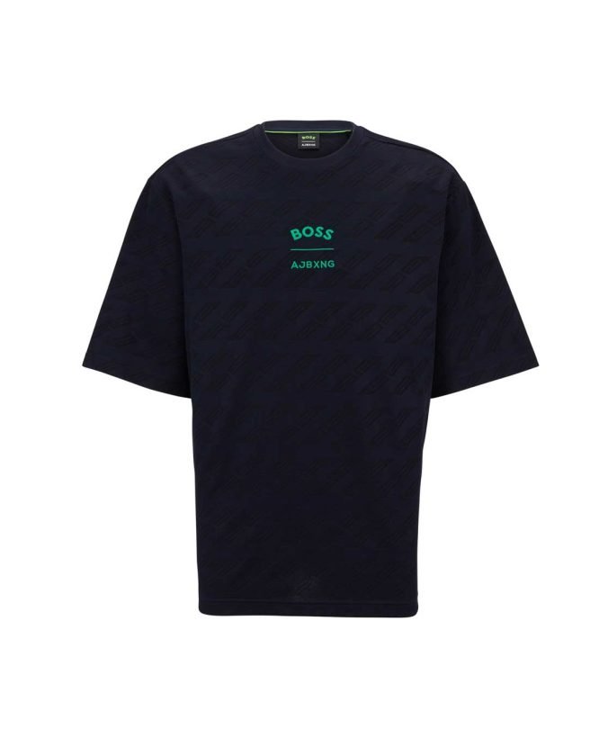 Original Hugo BOSS – X AJBXNG RELAXED-FIT LOGO-PRINT T-SHIRT WITH MONOGRAM JACQUARD