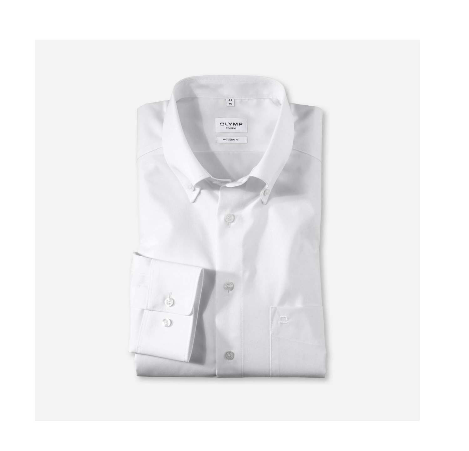 The OLYMP Tendenz shirt combines the solid product quality of OLYMP with a particularly attractive price. 100% cotton in easy iron quality turn the white colored OLYMP Tendenz shirt into a favourite business partner.