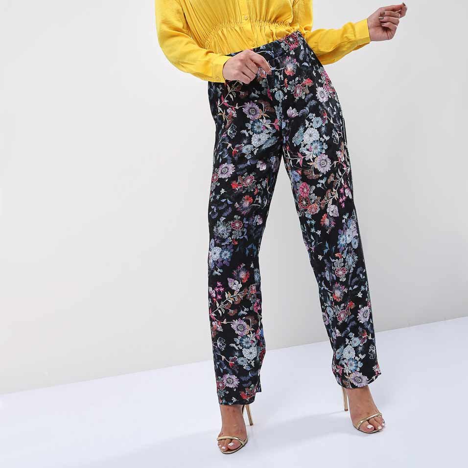 Crafted from soft and textured woven fabric. Featuring trousers with normal waist and elastic band at the waist. Allover floral print. Loose fit. Each item sold separately.
