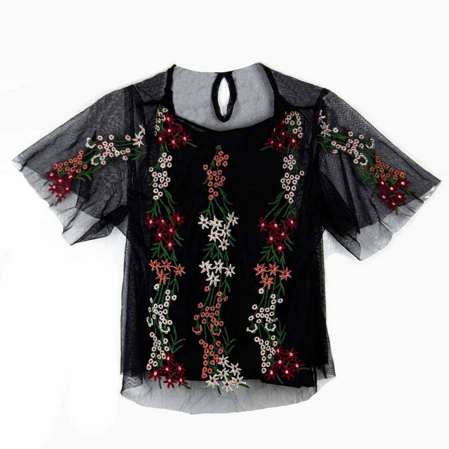 ZARA – Black FLORAL EMBROIDERED BLOUSE