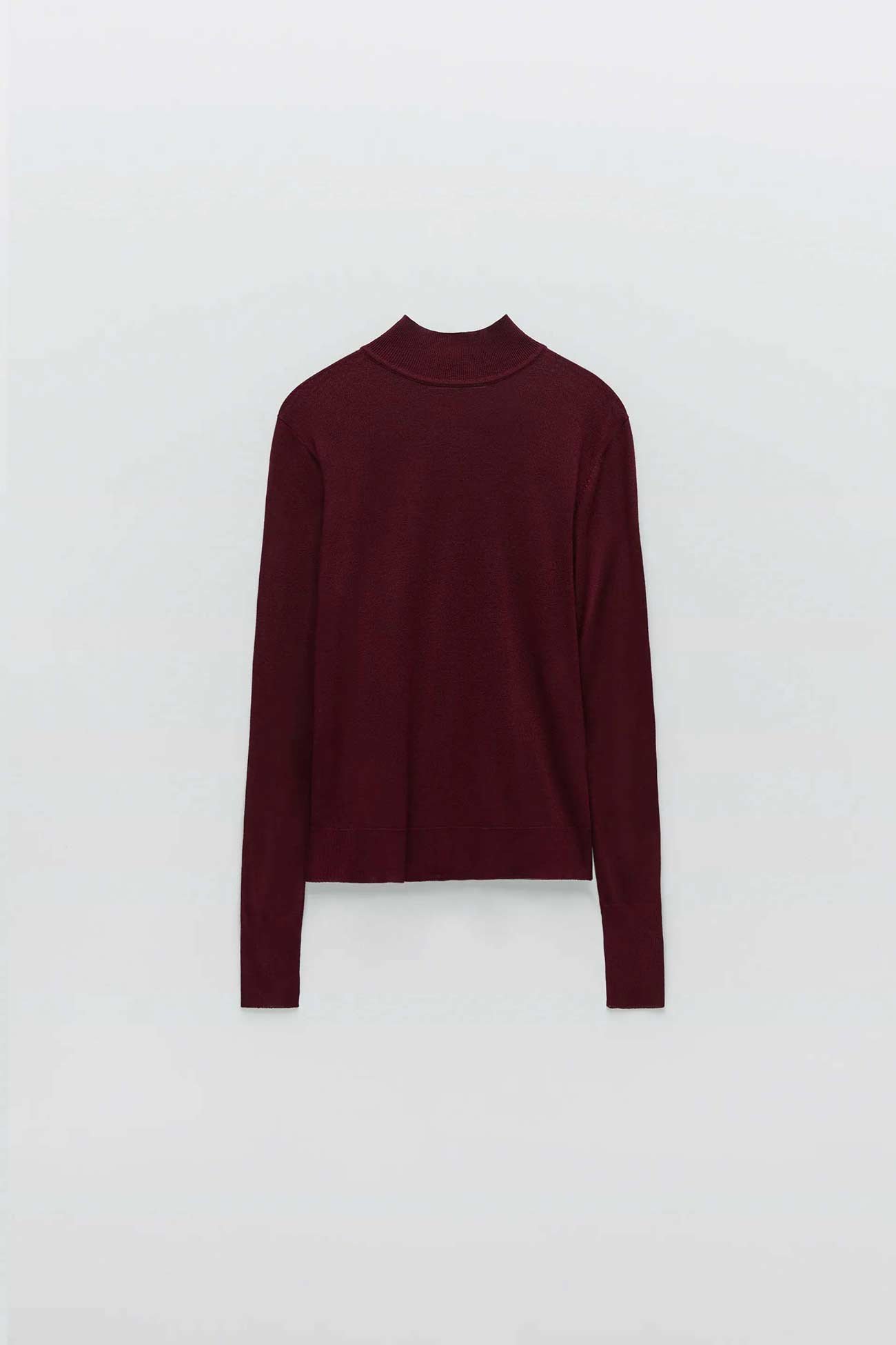 ZARA HIGH NECK KNIT SWEATER,LONG SLEEVES AND RIBBED TRIMS.