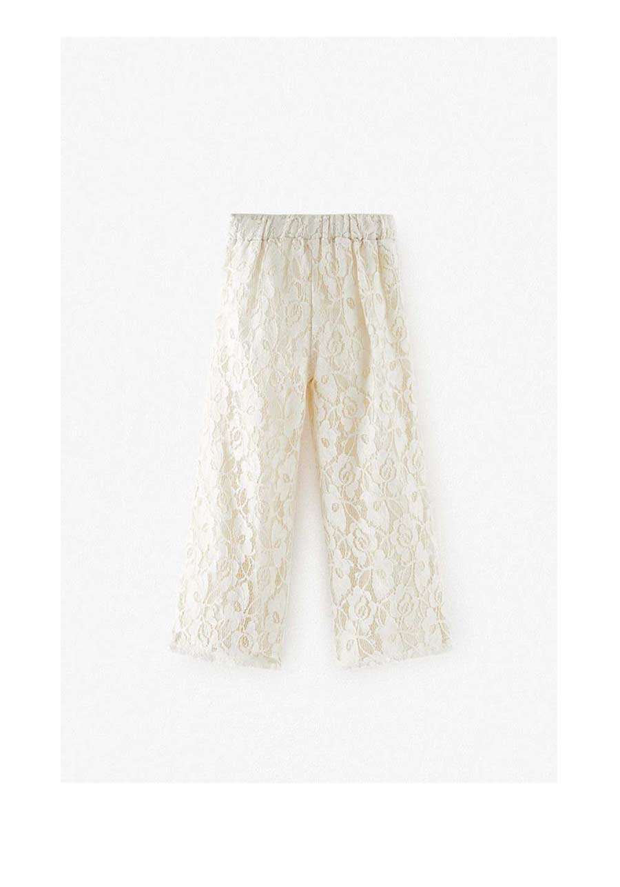 ZARA Pants with elastic waistband and embroidered motifs in guipure.