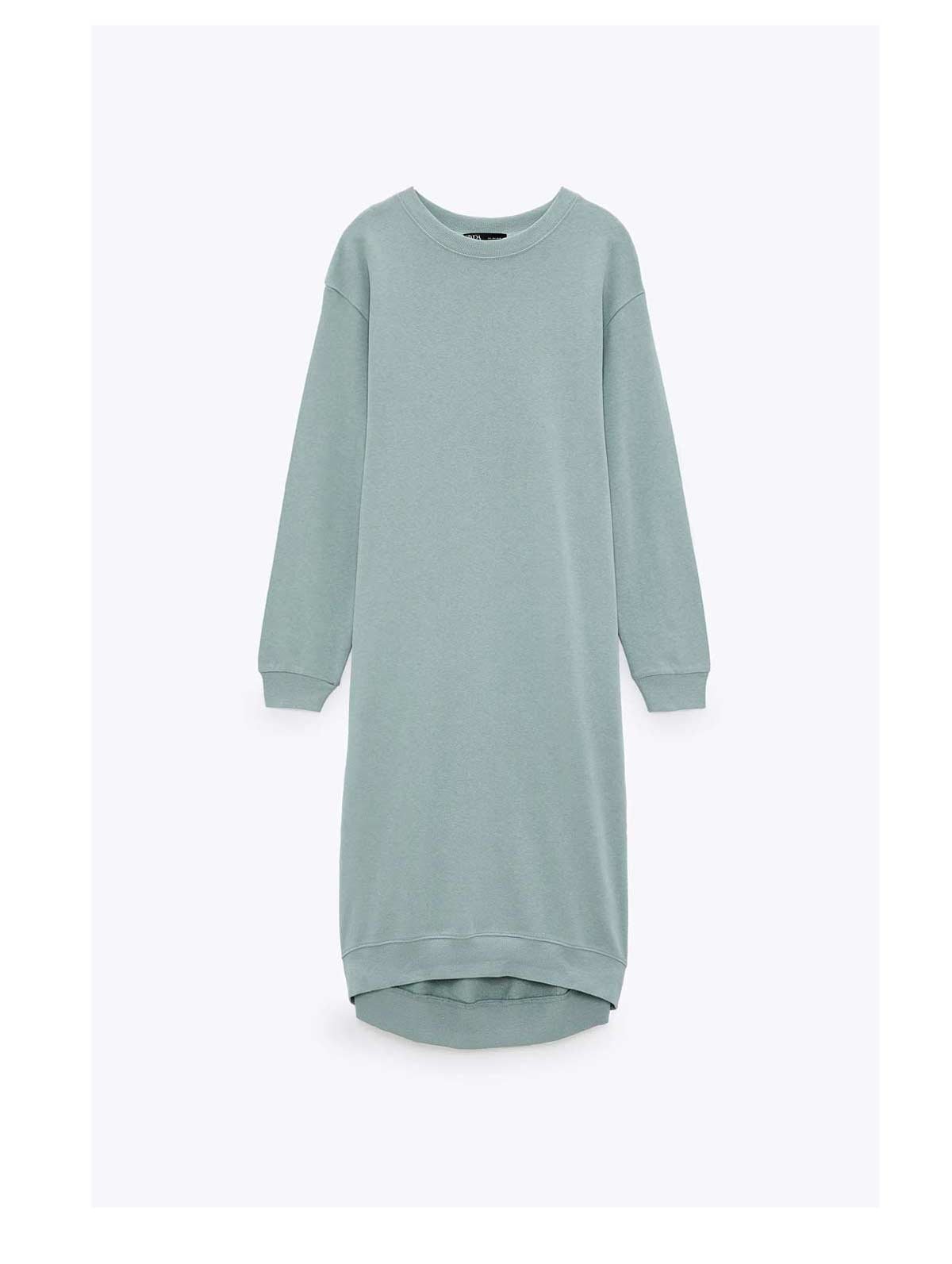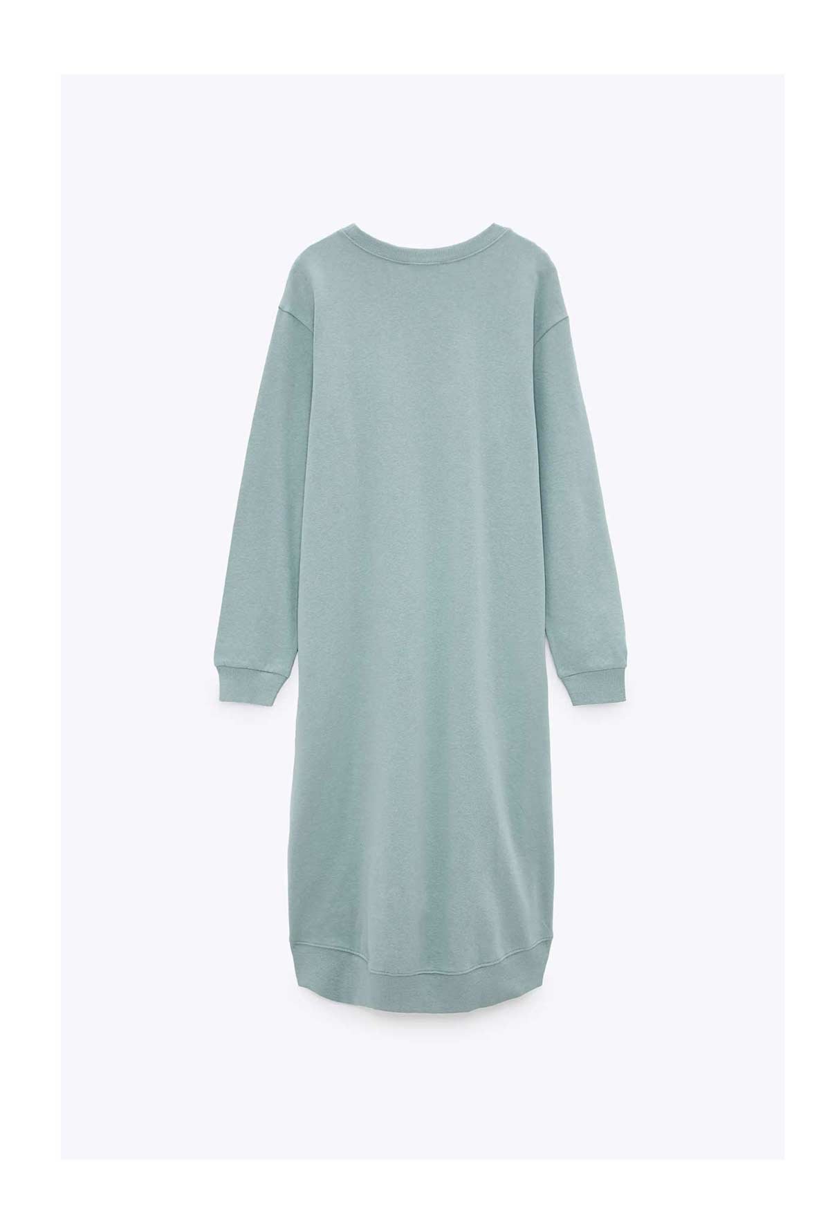 Loose-fitting dress with a round neck, long sleeves, side pockets and rib trims.